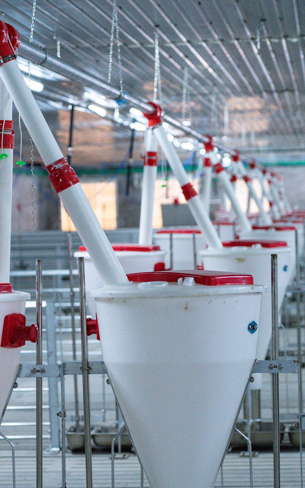 饲喂系统也就是俗称的料线系统,是为猪场开发的一款自动化产品,由传感器自动检测料槽中的料位,当料槽缺料时,在微处理控制下,启动料线开始下料;当料槽中料满时,传感器检测到料满状态,驱动电机停止运行输料。自动上料系统可以实现全自动操作,节省人力使用,降低工人的劳动强度,提高猪场的生产效率。